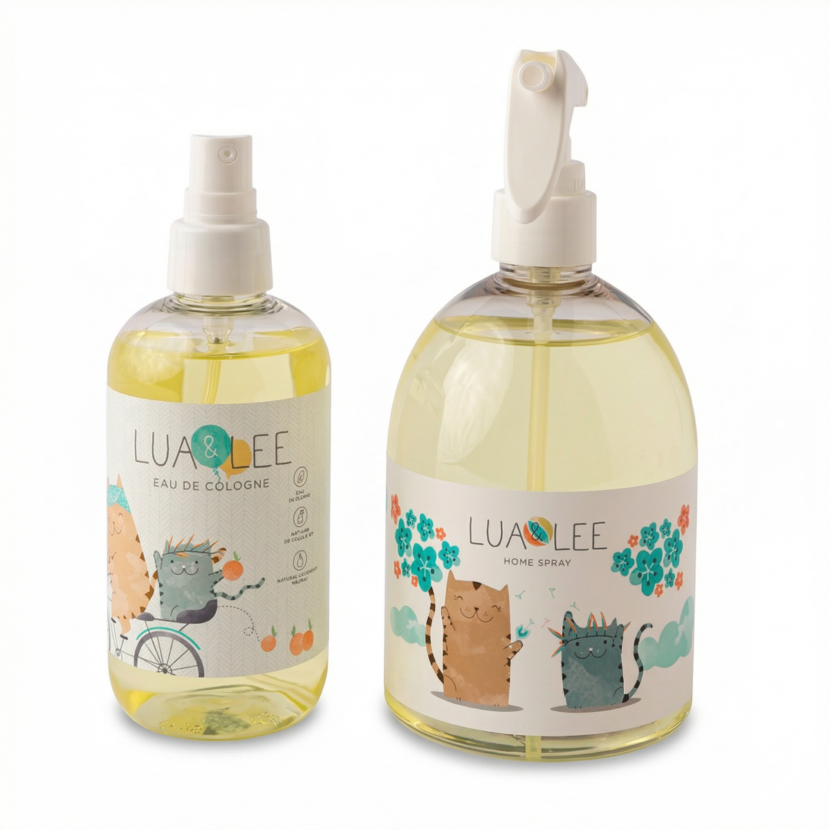 Un parfum pour tout ! Avec l'eau de Cologne Lua&Lee 250 ml, vous pouvez parfumer toute la famille sans limites. Il est faible en alcool et contient 3% d'eau d'orange bio. Une eau de Cologne très fraîche avec une odeur super agréable à utiliser au quotidien. Le Home Spray convertit l'odeur même de l'eau de Cologne en un diffuseur aromatique avec un pistolet conçu pour vous tenir compagnie lors de vos promenades dans la maison. Ainsi, vous pouvez parfumer tous les coins que vous voulez. Un pack idéal pour avoir famille et maison sous le charme d'une même fraîcheur. Avec l'eau de Cologne Lua&Lee, vous pouvez parfumer toute la famille sans limites et avec le spray domestique, vous pouvez donner à tous vos coins une odeur incroyable.